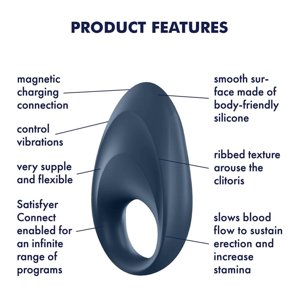 A Satisfyer Mighty One egy péniszgyűrű, amely hozzásegít ahhoz az erekcióhoz, amire szükséged van egy hosszan tartó szerelmi aktus során. A stílusos kivitelezésű péniszgyűrű bársonyosan puha szilikon felületével nemcsak a legértékesebb testrészedet, hanem partnered csiklóját is körülöleli. A széles csiklóizgató rész jóvoltából mindketten élvezhetitek a lélegzetelállító rezgéseket. A rezgéseket a kezelőfelület segítségével vagy az innovatív Satisfyer Connect App-el vezérelhetitek.