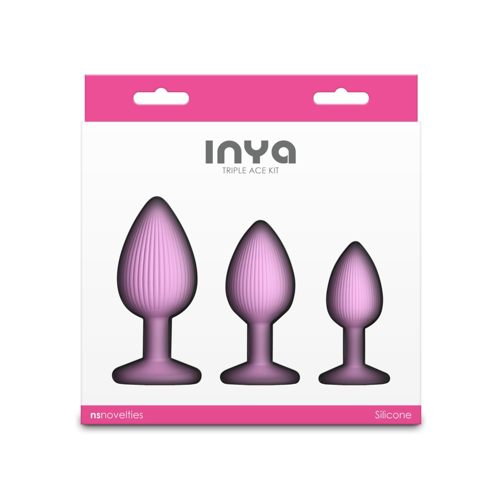 Az INYA - Triple Ace Kit luxus kényelemmel és élvezettel új örömet hoz wellness rituáléidba. Ez a prémium élvezeti termék nem mérgező, testre biztonságos anyagokból készül, amelyek ugyanolyan jó érzést nyújtanak, mint amilyen jól teljesítenek. Akár egyedül, akár partnerrel fedezed fel, az INYA - Triple Ace Kit elősegíti a szexuális vitalitást és a mélyebb kapcsolatot. Ez több, mint egy játék – ez egy lépés a nagyobb önismeret, a stresszoldás és a személyes önbizalom felé. INYA - Triple Ace Kit Három méretű, kemény, rugalmas és texturált fenékdugó, selymes behatolást biztosítanak. A Triple Ace Kit bársonyosan puha, testre biztonságos szilikonból készült, erős tapadókoronggal rendelkezik. Minden síkosítóval használható.