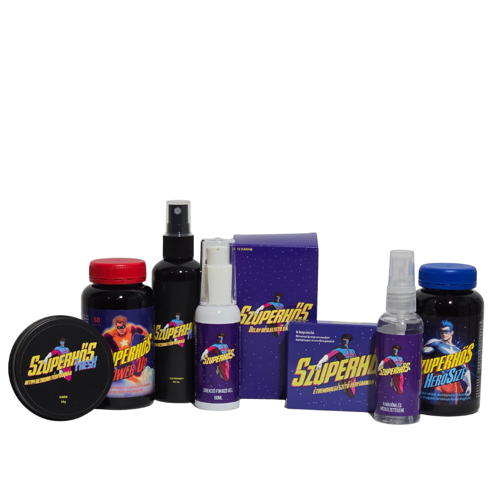A Szuperhős Giga Csomag minden darabja azért jött létre, hogy visszaadja neked azt az energiát és magabiztosságot, amit a mindennapokban mozgósítasz. Legyél te az éjszaka (és a nappal) szuperhőse! Ezzel a csomaggal nincs többé bizonytalanság, csak színtiszta férfierő.